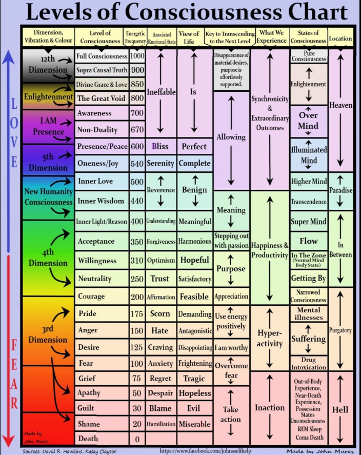 Lagere niveaus (onder 200) worden gekenmerkt door negatieve emoties zoals angst, woede en schuld. Deze niveaus zijn verlammend en houden ons vast in scheiding en lijden.